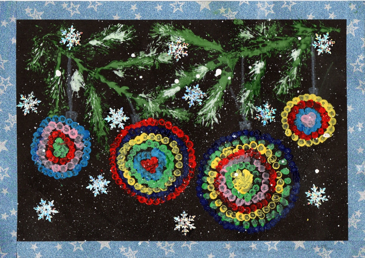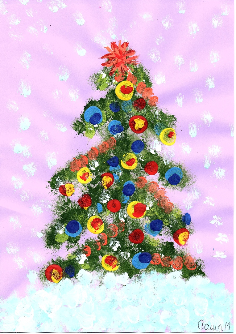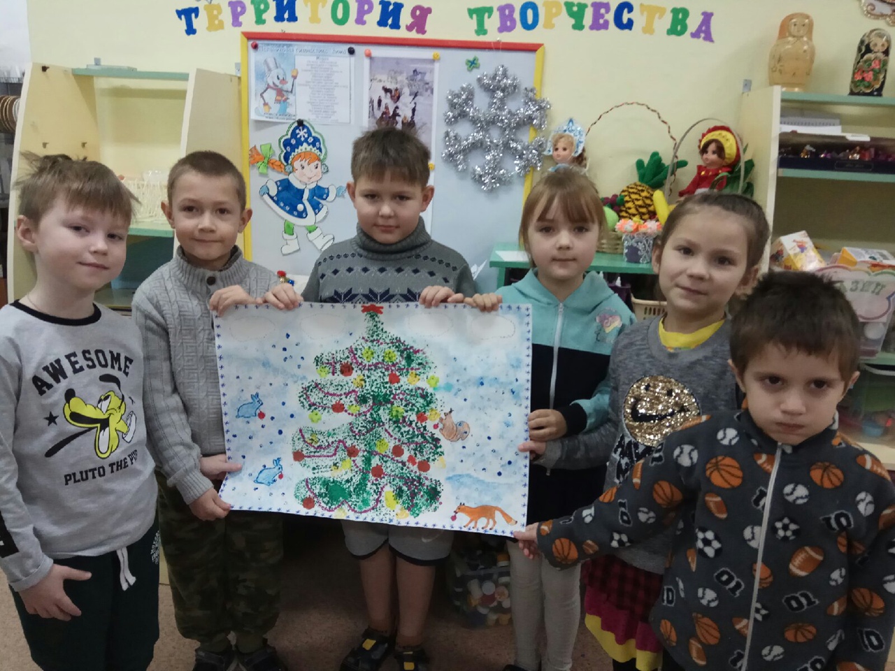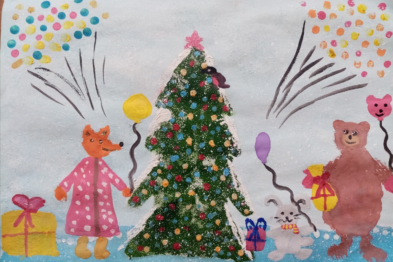 В мероприятии приняло участие более 50 воспитанников практически из всех детских садов района. В рамках конкурса дети под руководством воспитателей создавали свои маленькие шедевры, используя различные нетрадиционные техники рисования. Самым популярным сюжетом стало, конечно же, изображение новогодней елки, так как этот праздничный символ наиболее знаком и понятен детям-дошкольникам. Также малыши рисовали снеговиков, заснеженные домики, красочные фейерверки. Все работы получились яркими и наполненными ожиданием чуда. На фотографиях — рисунки победителей в различных возрастных номинациях.