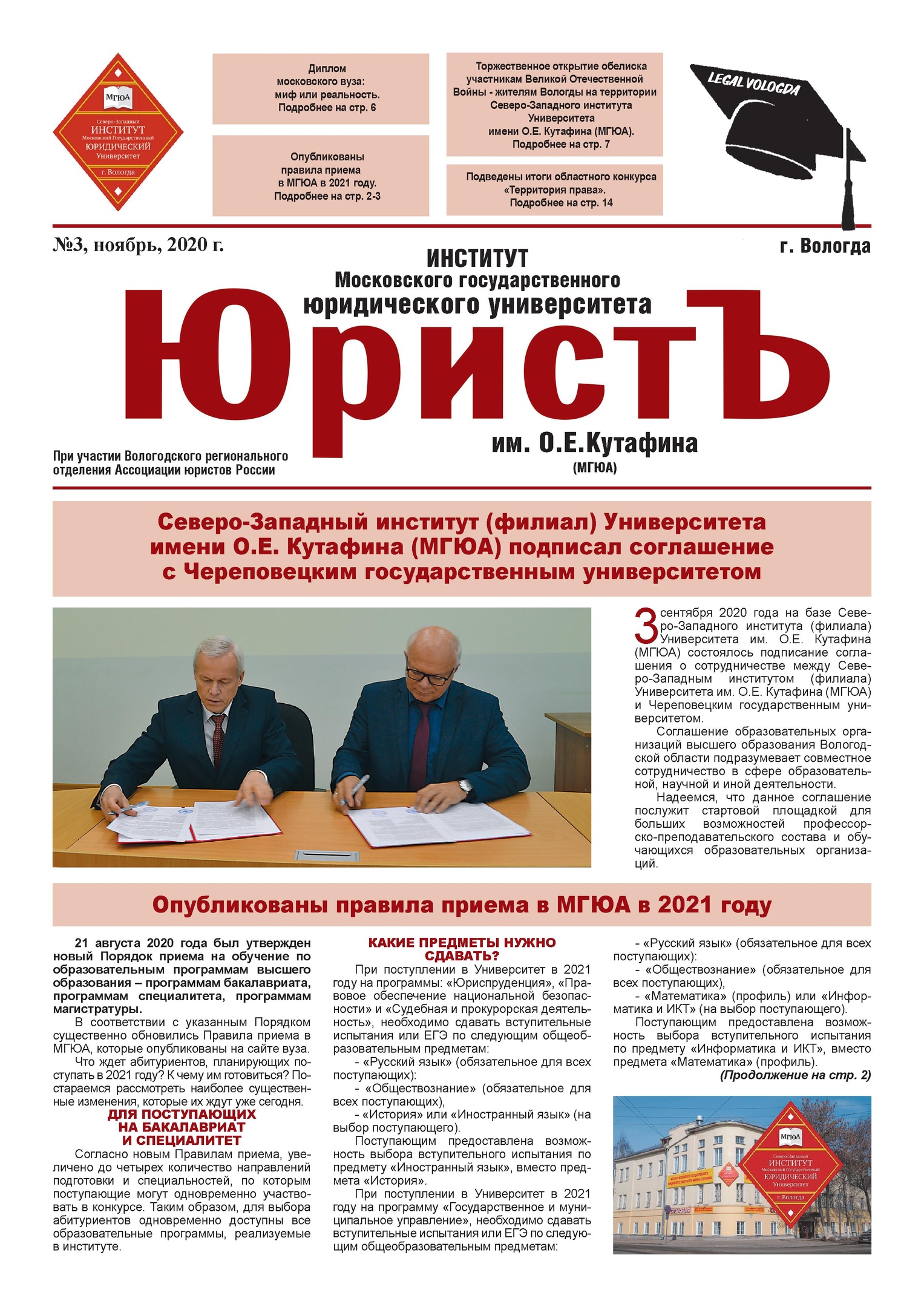 В целях профессионального ориентирования предлагаем обучающимся общеобразовательных организаций и родителям познакомиться с газетой Северо-Западного института Университета имени О.Е. Кутафина (МГЮА) "Юристъ".