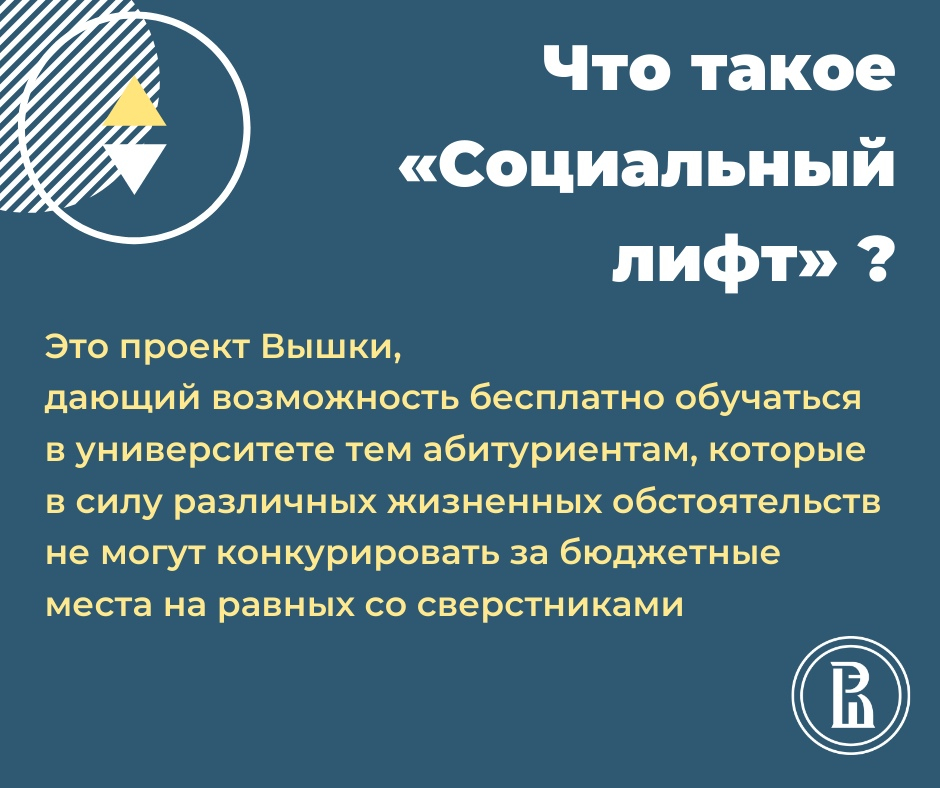 «Социальный лифт» — программа Высшей школы экономики, открывшаяся в 2019 году. Ее цель — помочь ребятам, не имеющим возможности на равных конкурировать со сверстниками при поступлении в вуз, дать им шанс получить качественное высшее образование в НИУ ВШЭ бесплатно за счет средств университета.