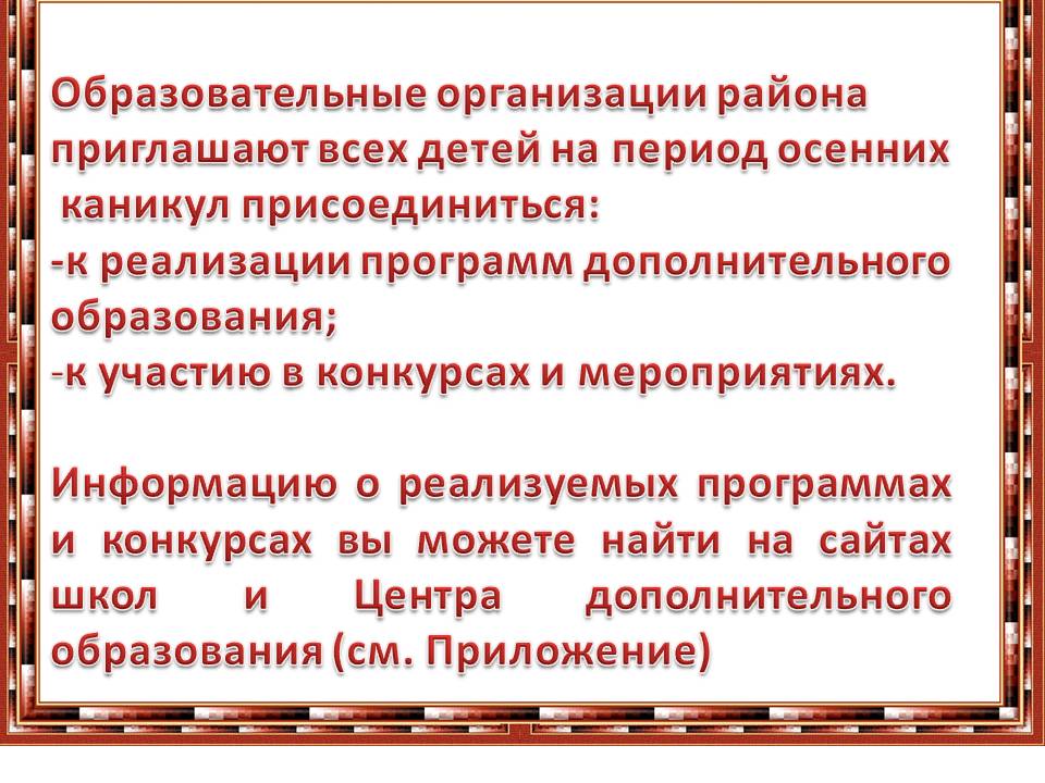 На протяжении осенних каникул учащимся вновь будут предлагать интересные, познавательные и увлекательные занятия, фильмы, задания от ведущих учреждений дополнительного образования Вологодской области.