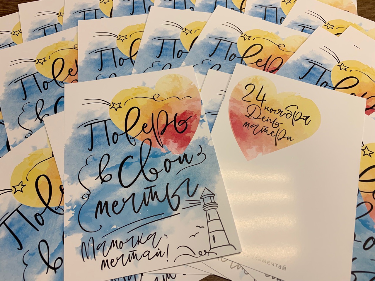 Акцию запустили Департамент внутренней политики Правительства Вологодской области совместно с областным центром «Содружество». Для проведения акции и тематических мероприятий, посвященных Дню матери, изготовлены красочные открытки для мам «Поверь в свои мечты». Они будут раздаваться в муниципальных районах и городских округах нашего региона.