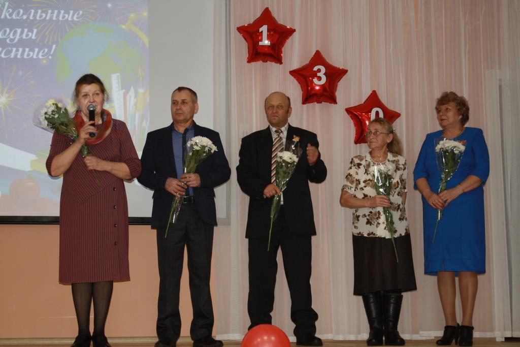 Торжественная часть праздника проходила в актовом зале в форме праздничного открытого урока. Перекличка выпускников 50-60-70 годов, интерактивная игра «Колесо школьной истории», чествование учителей – ветеранов, всю свою жизнь посвятивших школе и детям.