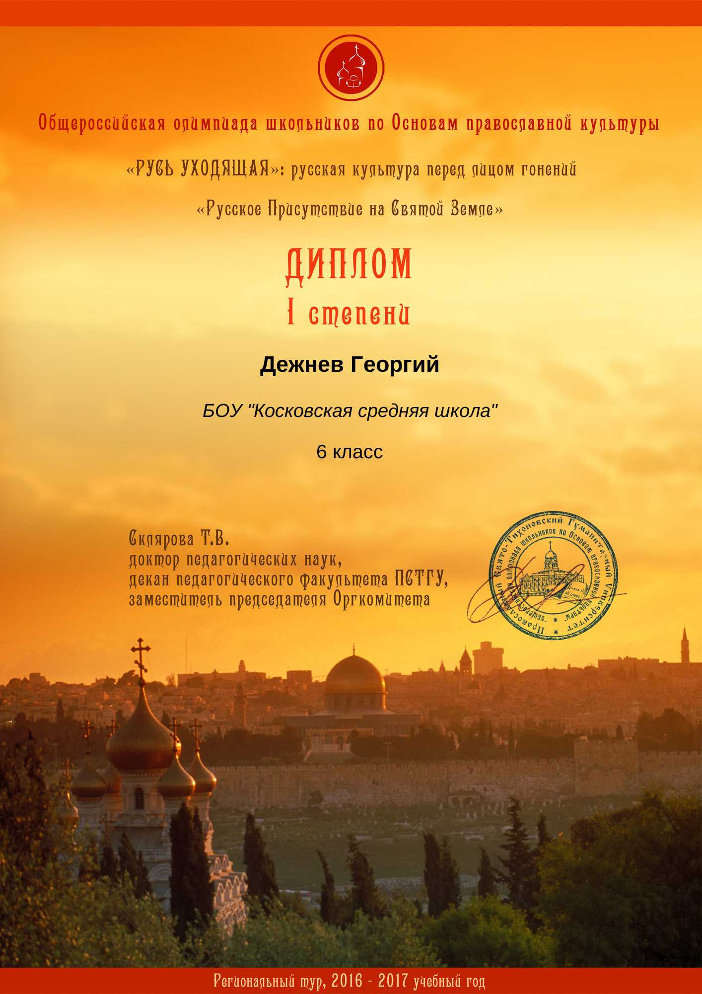 По итогам олимпиады Дежнёв Георгий стал победителем олимпиады и награжден дипломом 1-й степени
