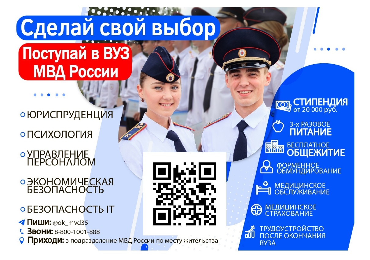 В настоящее время Управление МВД России по Вологодской области проводит подбор и подготовку кандидатов к поступлению в образовательные организации МВД России по программам высшего образования в 2024 году. Контактное лицо - Левинцев Николай Сергеевич (Управление по работе с личным составом УМВД России по Вологодской области), тел. (8172) 79-43-06. ИНФОРМАЦИЯ О НАБОРЕ. ТРЕБОВАНИЯ К КАНДИДАТАМ