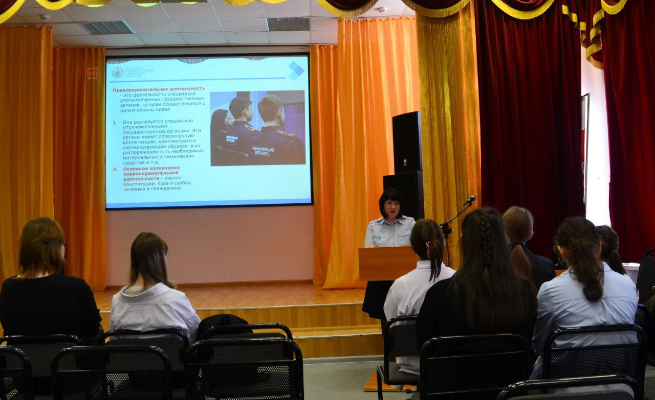 Оксана Васильевна акцентировала внимание детей на поступление в высшие учебные заведения системы МВД России, о возможности обучения в профессиональных образовательных организациях области по специальности «Правоохранительная деятельность» с последующим поступлением на службу в органы внутренних дел области.